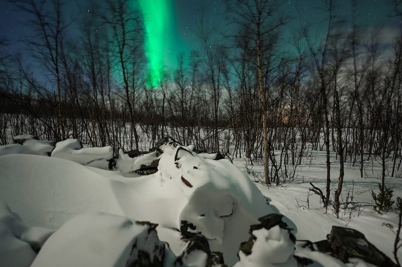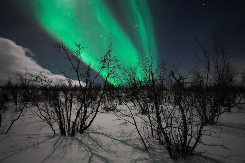 J'ai opté pour l'excursion de 3 heures Aurora en raquette d'Abisko et Björkliden, comme je voulais profiter de la sérénité de la nuit nordique dans une forêt et pour la chance de voir Aurora danser ci-dessus.