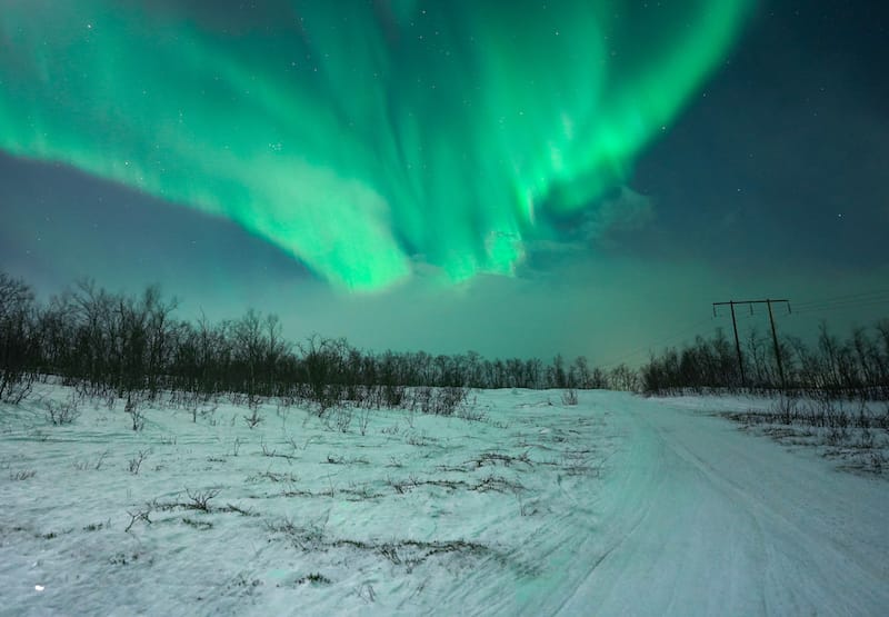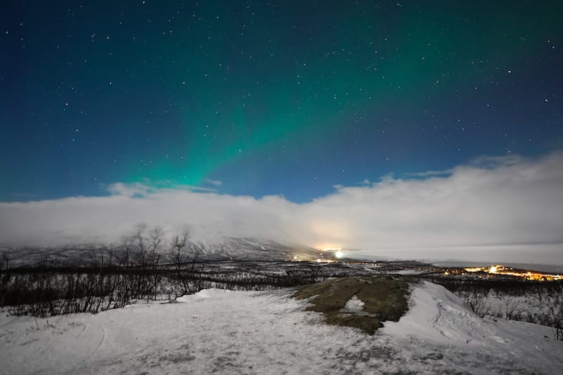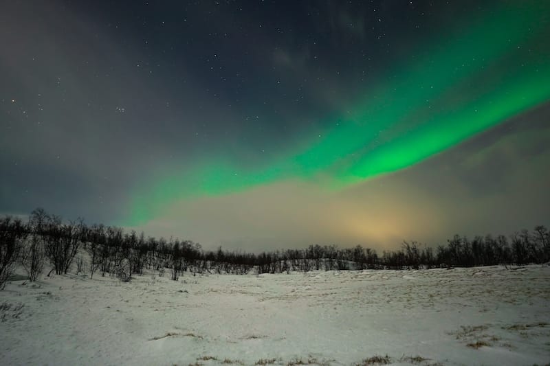 Au tout début de la tournée, vous traverserez l'aéroport d'Abisko et cela offrira l'une des premières opportunités pour photographier les Northern Lights, car vous avez une vue claire sur une grande partie du ciel d'ici.